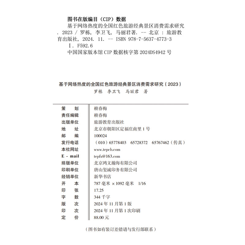 基于网络热度 全国红色旅游经典 李卫飞 国图书店 马丽君9787563747733 罗栋 全新正版 2023 景区消费需求研究