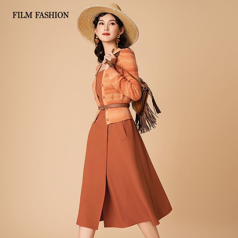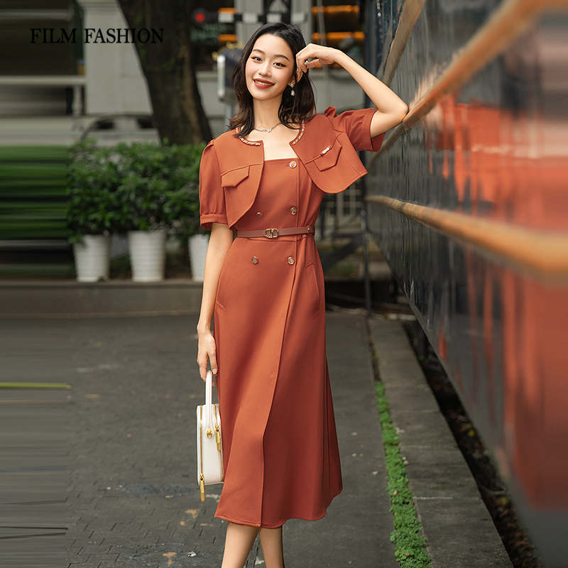 夏季 两件套 新款 连衣裙女 复古气质优雅中长款 一电影一时装
