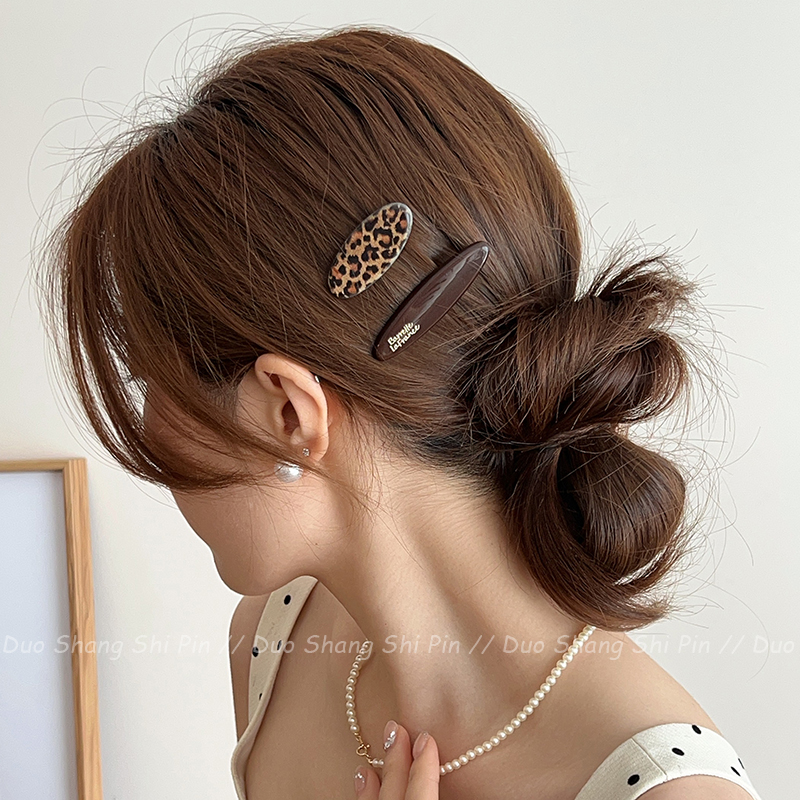 韩国咖色豹纹发夹女高级感美拉德边夹发卡新款 刘海夹鸭嘴夹子发饰
