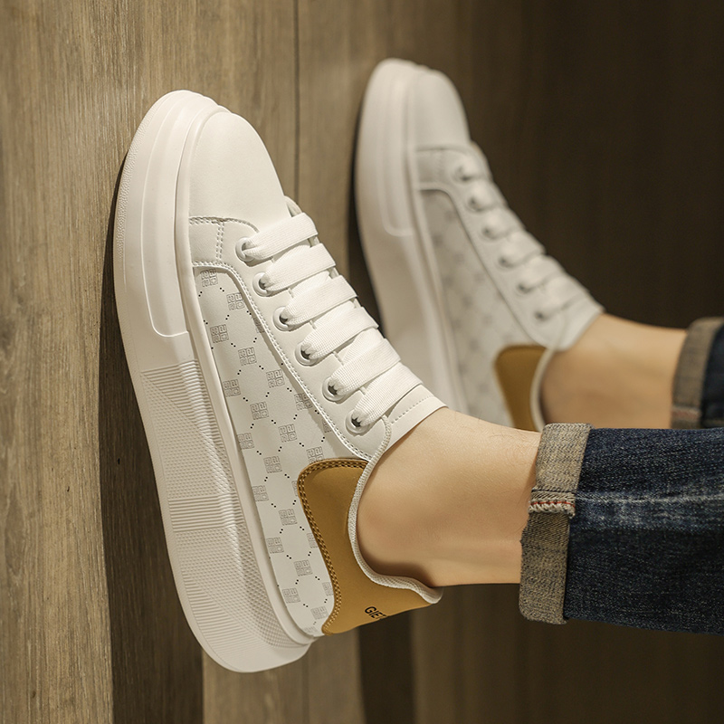 厚底增高皮面高级感板鞋 百搭透气轻便软底休闲运动男鞋 男士 小白鞋