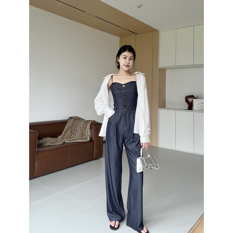显瘦吊带连体裤 张阿星 时髦高级气质修身 2024新款 牛仔很忙