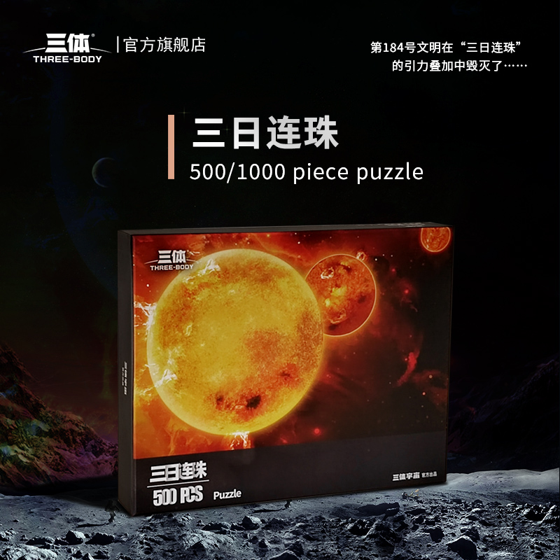 三体周边拼装 1000片 智力拼图潮玩具红岸基地量子纠缠太空战舰500