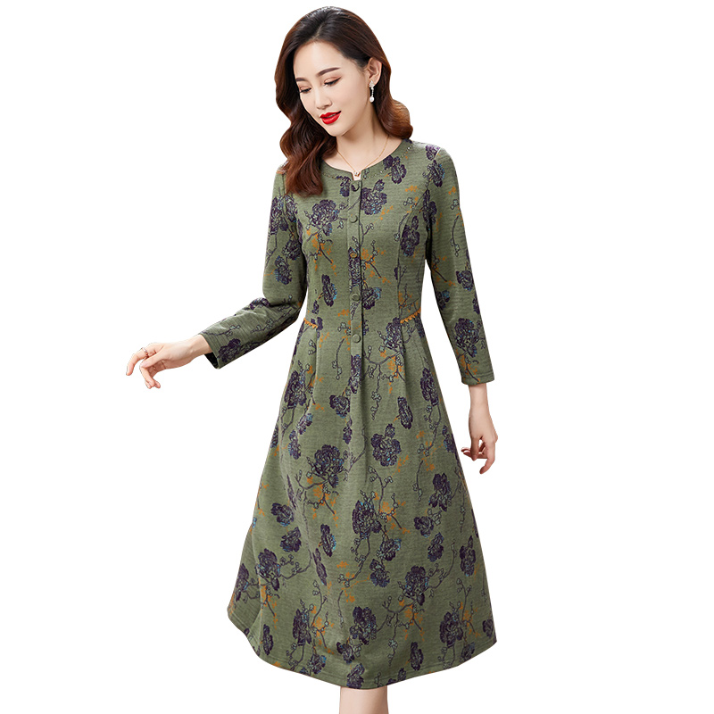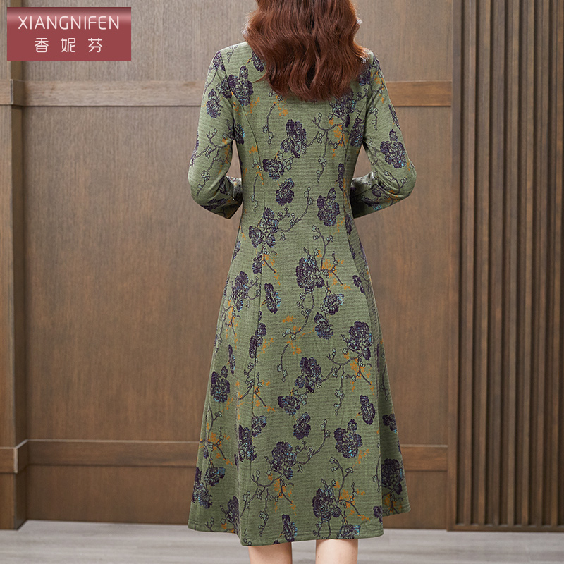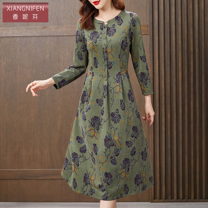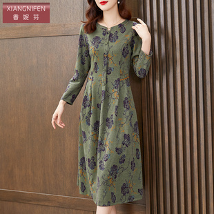 香妮芬高贵优雅收腰中年妈妈连衣裙2025新款 春秋气质温柔风羊毛裙