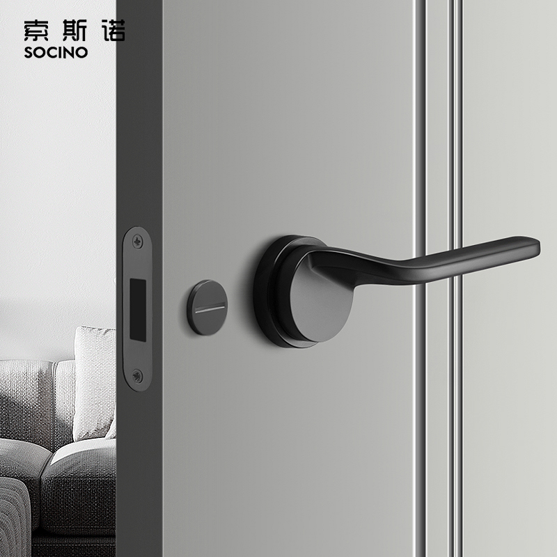 索斯诺卧室门锁室内静音门锁北欧现代门把手极简黑色磁吸门锁套装
