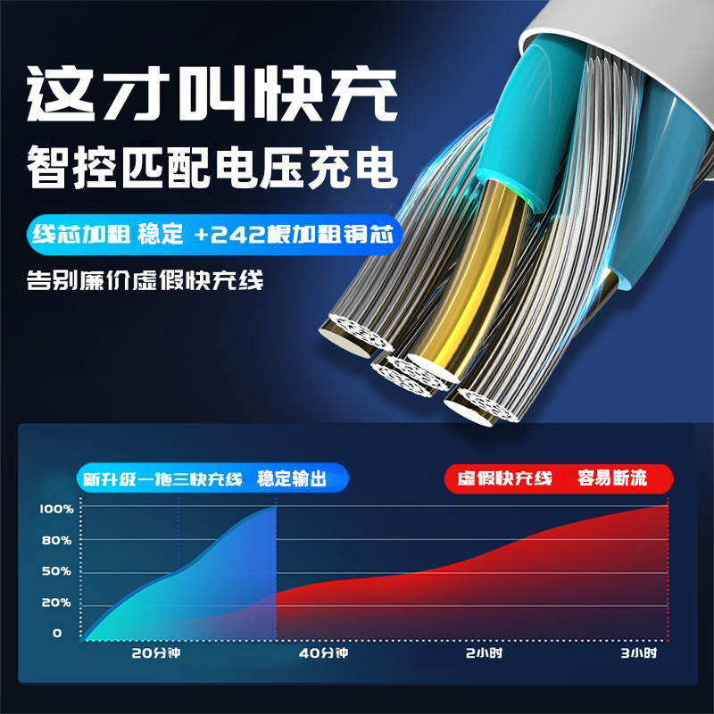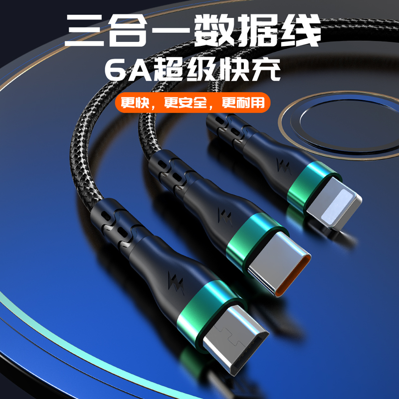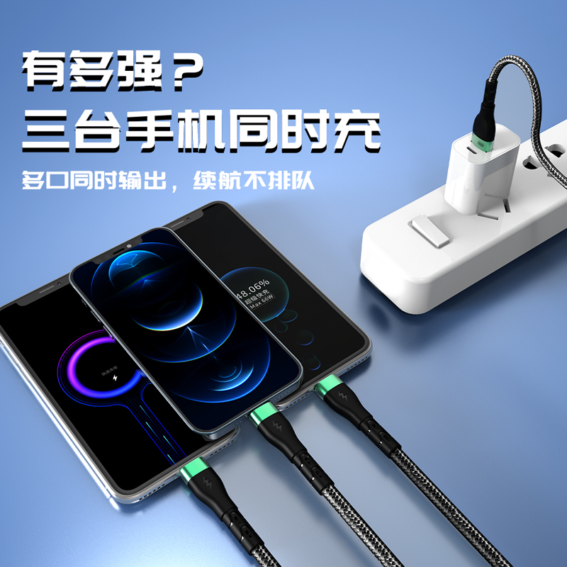120W超级快充三合一快充数据线适用苹果vivo华为安卓闪充手机一拖三充电器线三头多功能车载tpyec