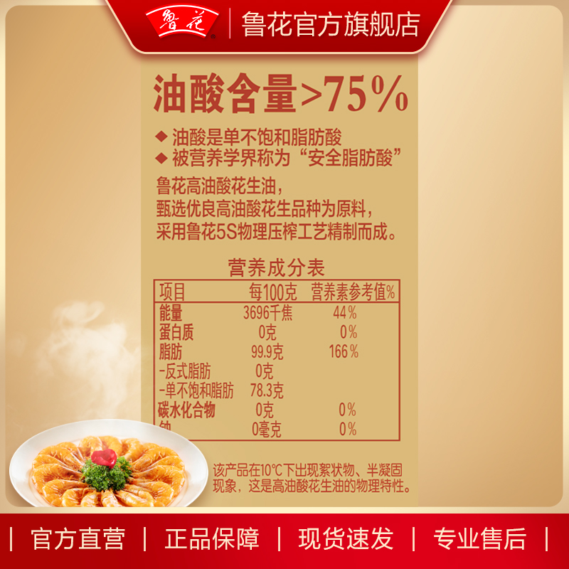 鲁花高油酸花生油3.06L 食用油粮油5S物理压榨 鲁花直营