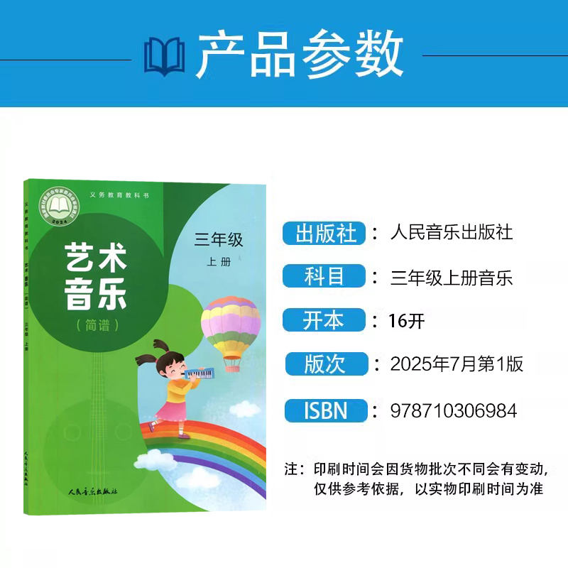 2025人音版 简谱 三年级上册音乐书课本教材人音版 社义务教育教科书三年级上册音乐 音乐三年级上册课本书学生用书人民音乐出版 正版
