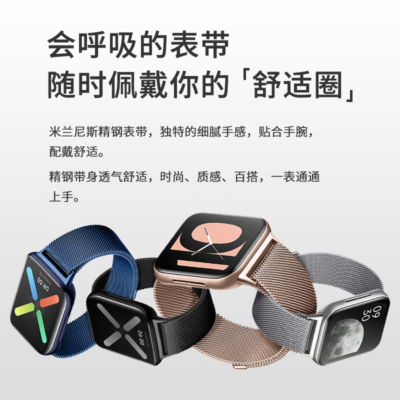 oppowatch46mm替换腕带41潮男女款 适用于oppo 1表带米兰尼斯se金属磁吸4pro智能手表表带42运动时尚 watch3