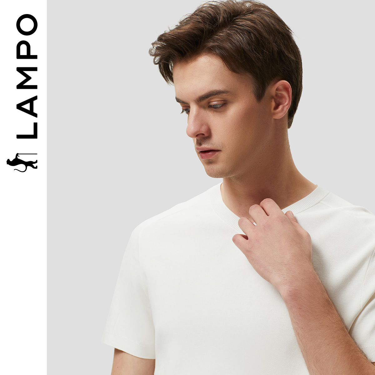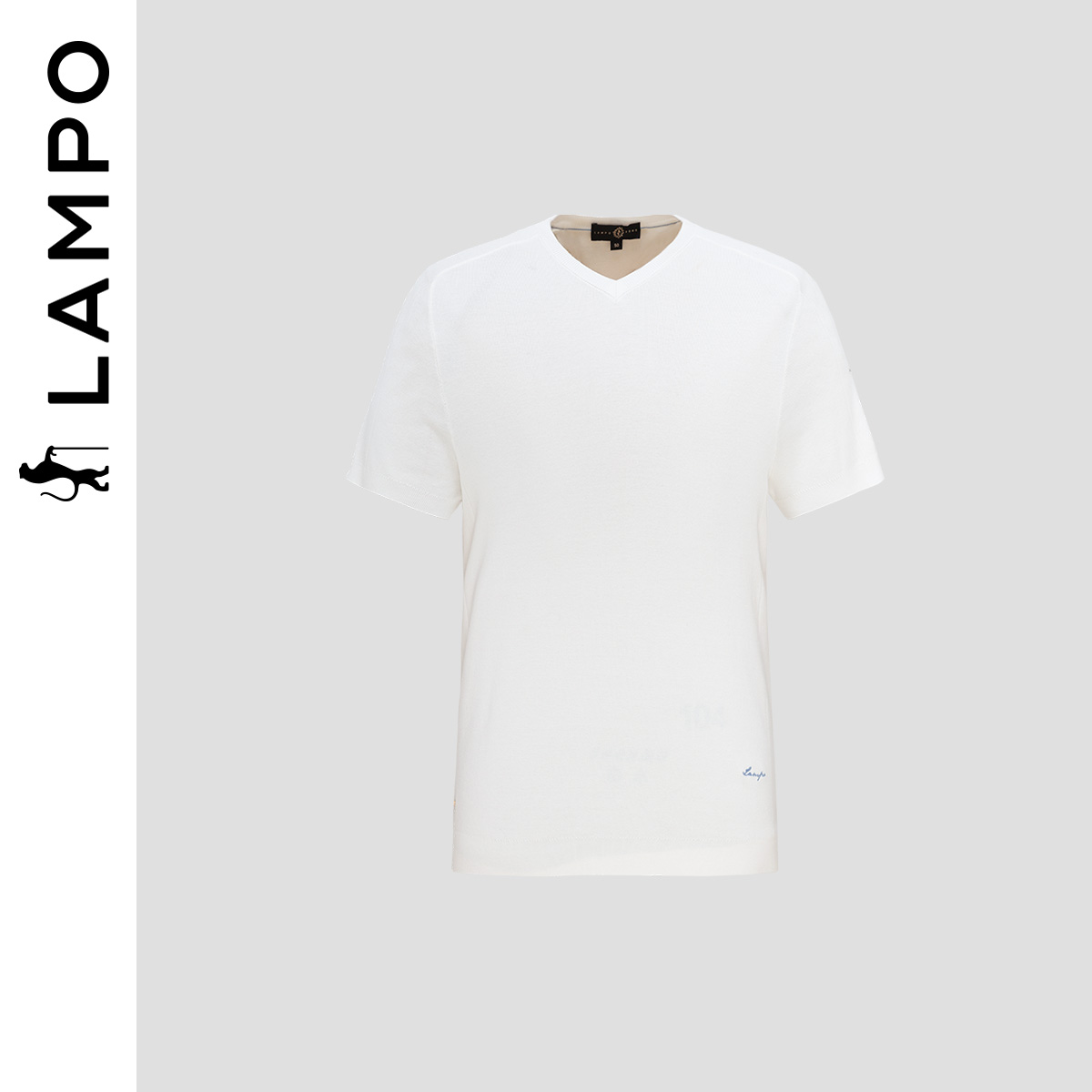 麻爽棉 T恤麻爽棉V领简约白色半袖 LAMPO 短袖 打底T 蓝豹男士