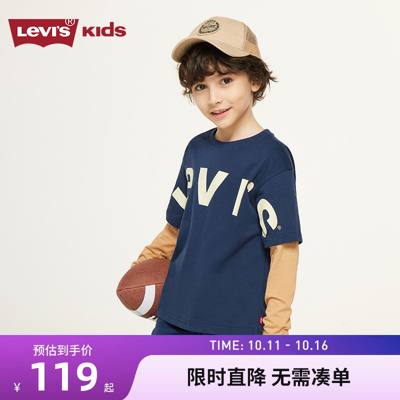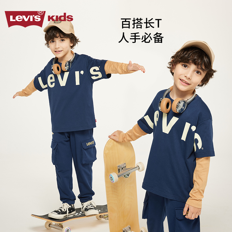 s李维斯儿童装 T恤儿童中大童打底衫 2025春秋季 男童长袖 新款 Levi