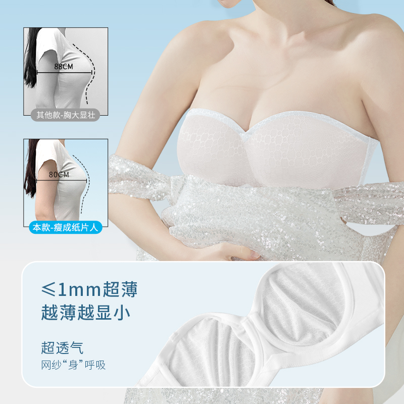 超薄大码 无肩带内衣大胸显小防滑抹胸防下垂文胸胸贴吊带胖mm裹胸
