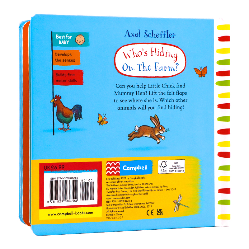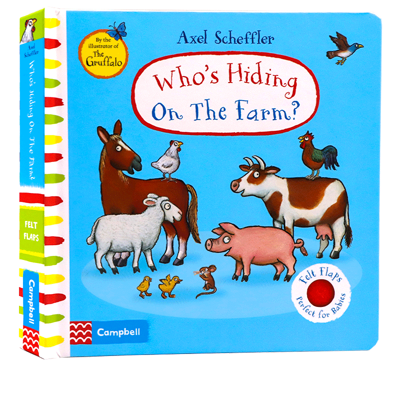 Scheffler 3岁儿童启蒙认知亲子互动 Who the Hiding 谁躲在农场里纸板触摸翻翻书 进口英文原版 Farm咕噜牛插画家Axel 绘本