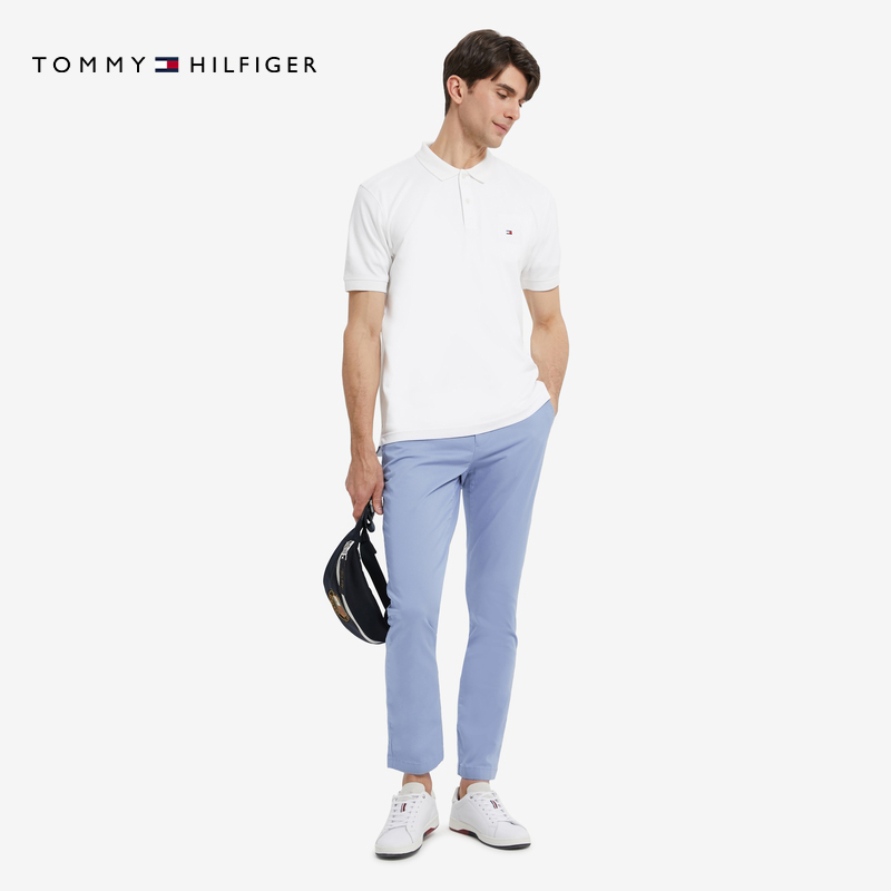休闲裤 Tommy秋冬男装 长裤 商务通勤斜纹微弹浅蓝色直筒西裤 经典