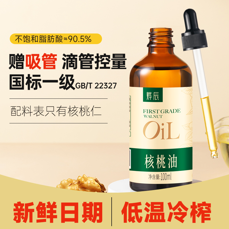 有机核桃油冷榨0添加热炒油食用油 送婴儿宝宝儿童婴幼儿辅食食谱