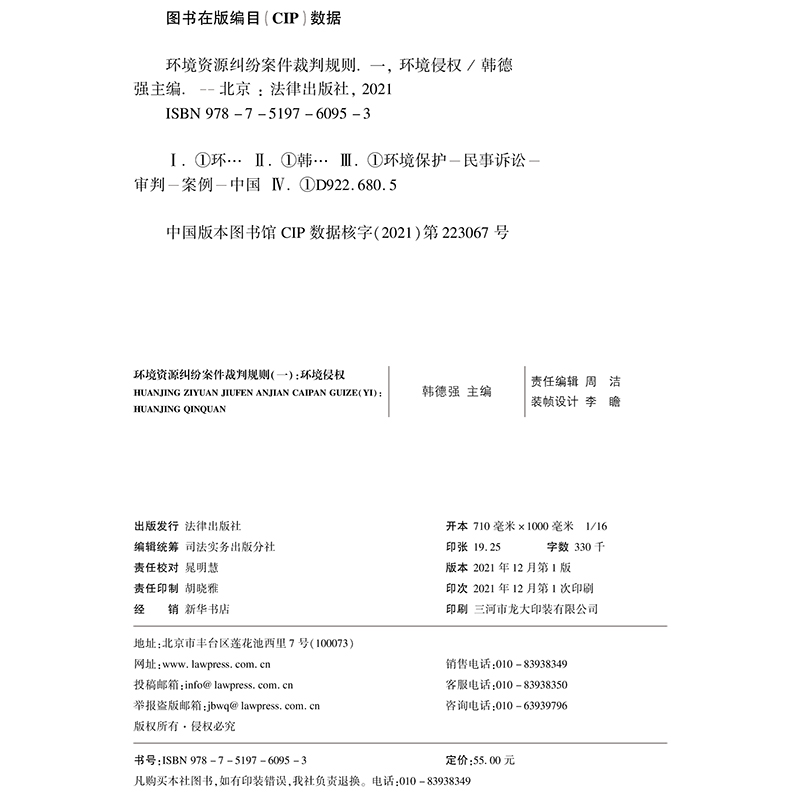 环境侵权 韩德强 环境侵权民事案件审理疑难问题 2022新书 法律出版 一 类案裁判规则 社9787519760953 环境资源纠纷案件裁判规则