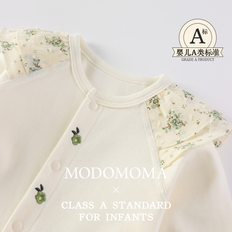 modomoma新生儿衣服婴儿连体衣秋装 连体哈衣外出爬服 女宝纯棉飞袖