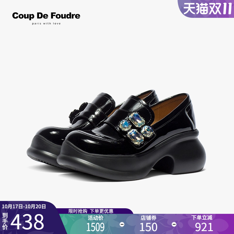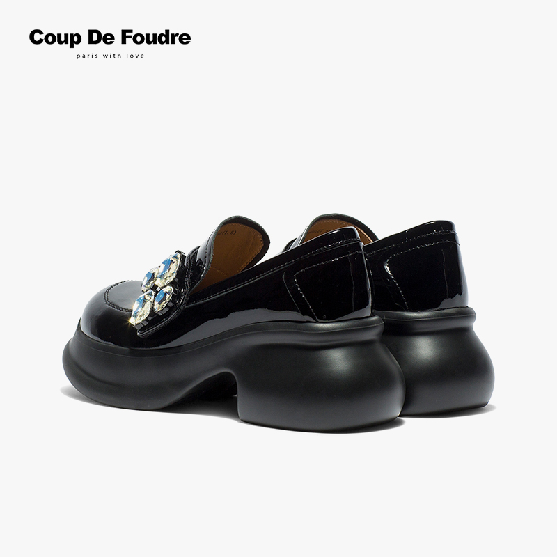 轻奢秋季 女休闲JK小皮鞋 新款 单鞋 百搭漆皮厚底水钻乐福鞋 CDF女鞋