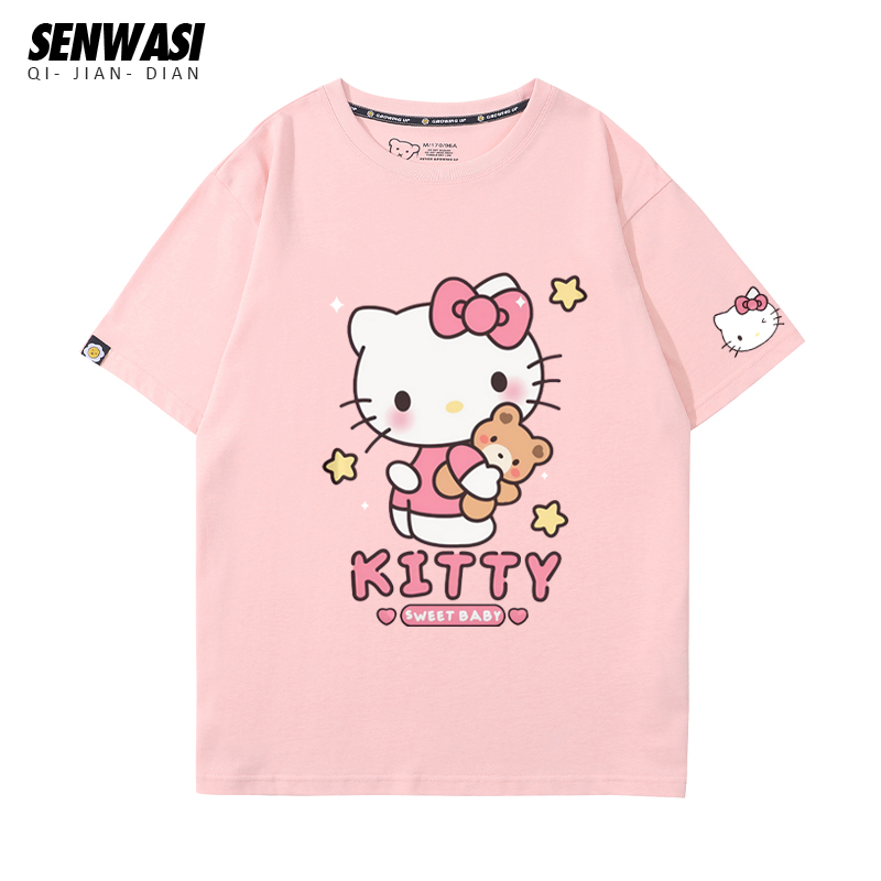 库洛米美乐蒂卡通二次元 男女纯棉宽松百搭T恤休闲潮 联名周边短袖