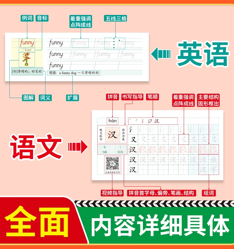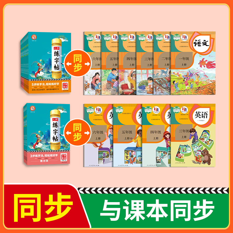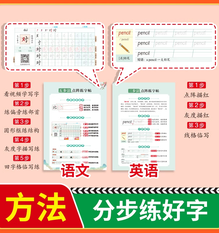 小学生语文英语五步法点阵练字帖一年级二年级三四五六字帖上册下册每日一练笔画笔顺练语文生字同步描红人教版 专用练习册写字练字