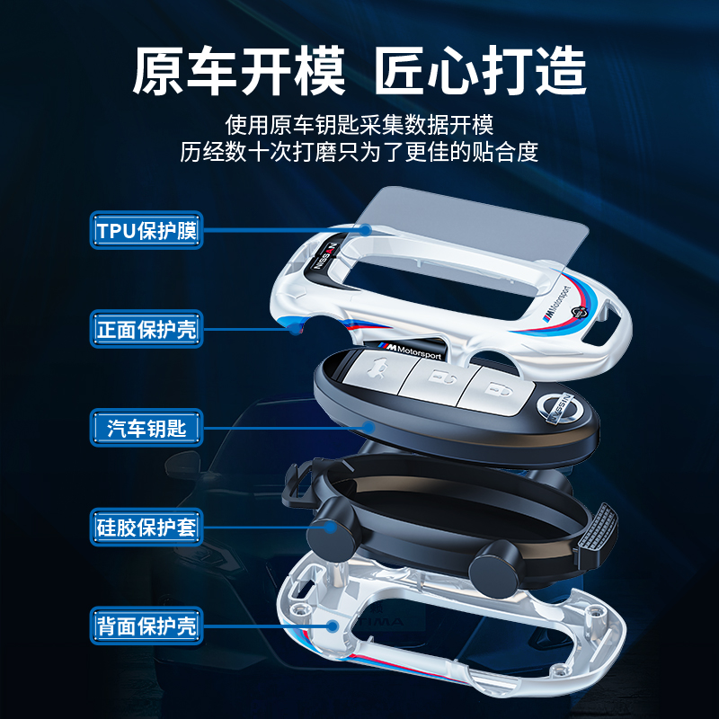 适用日产14代轩逸钥匙套尼桑新天籁奇骏荣耀逍客蓝鸟骐达车包壳扣
