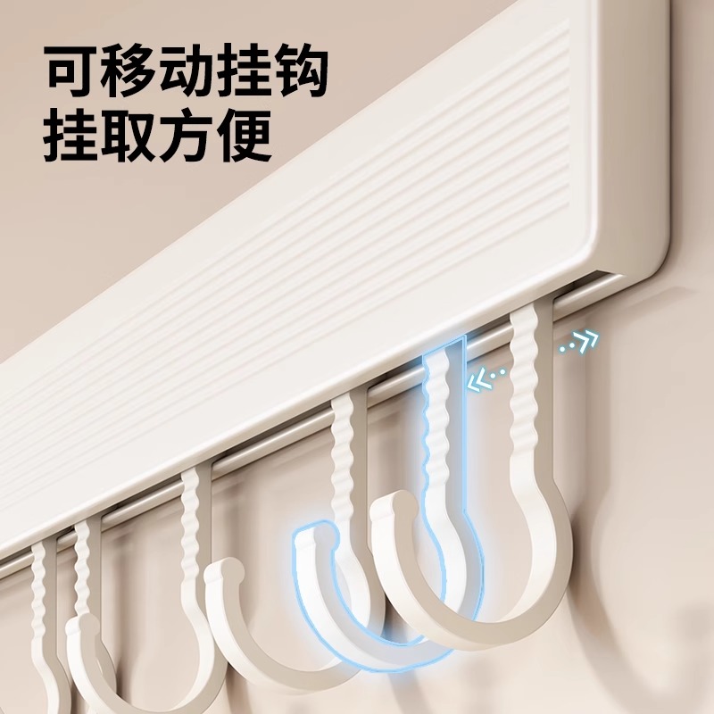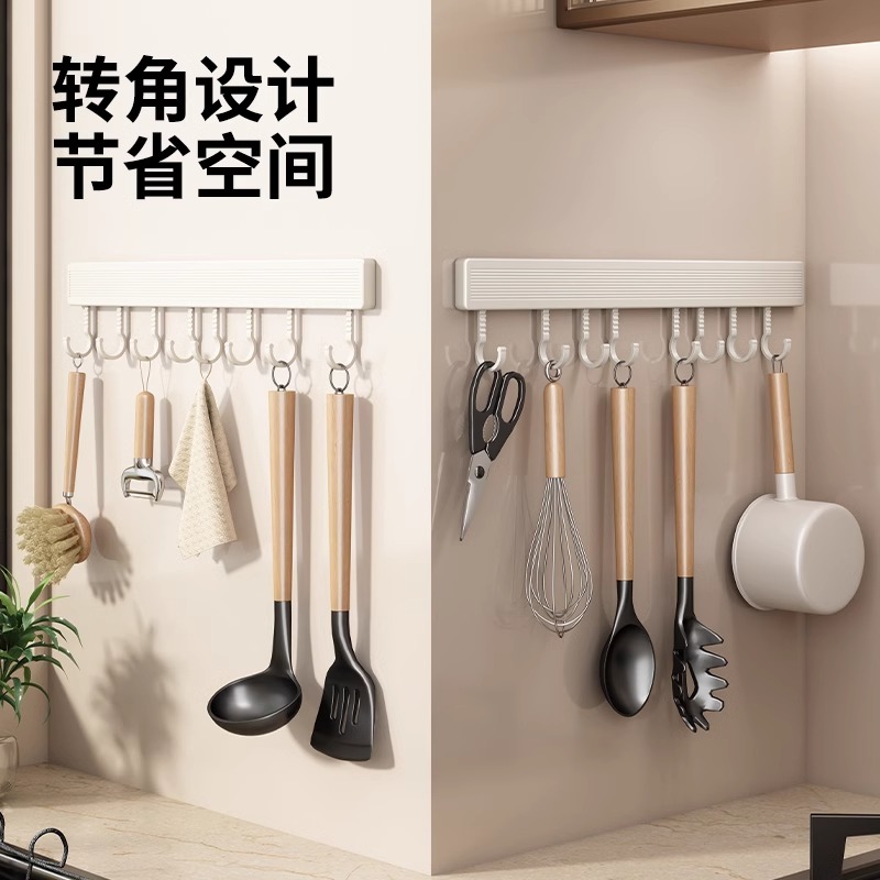 免打孔厨房挂钩粘钩一排式 挂勺子铲子挂架排钩锅铲白色多功能挂杆