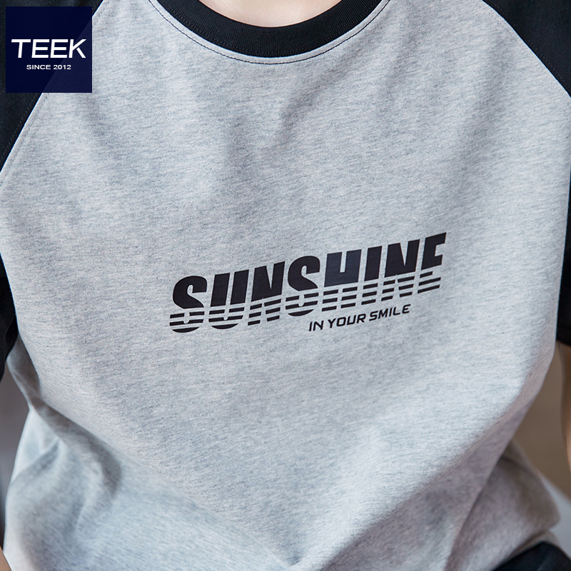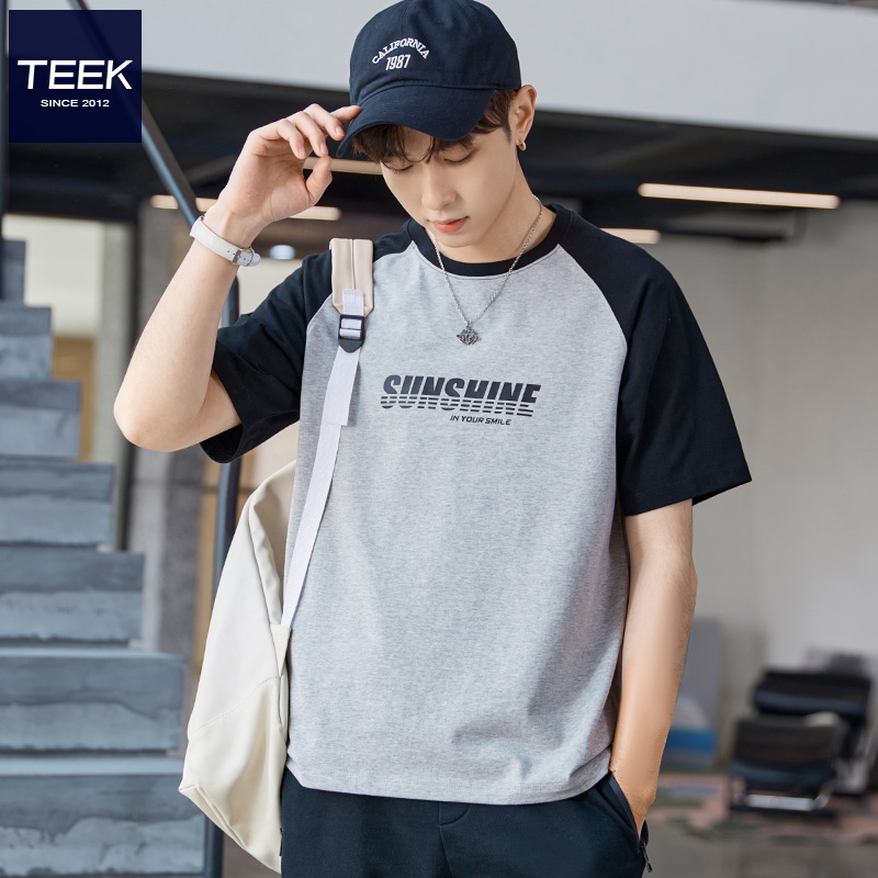 青少年美式 宽松插肩袖 高级感上衣服 T恤男夏季 TEEK纯棉INS潮牌短袖