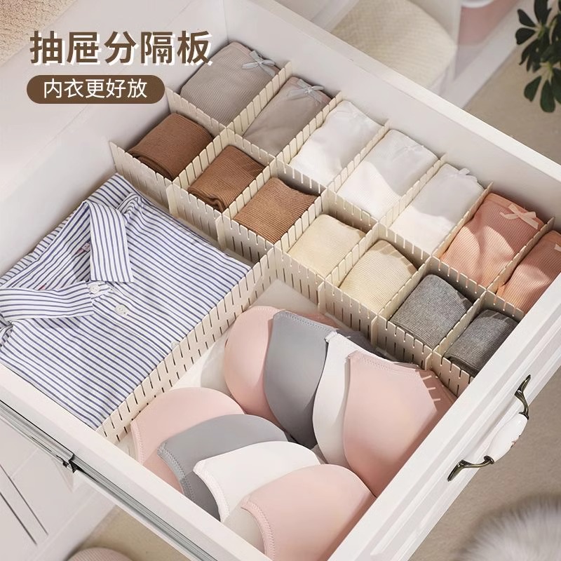 抽屉收纳分隔板片塑料分割板隔断自由组合内衣袜子收纳盒分格神器