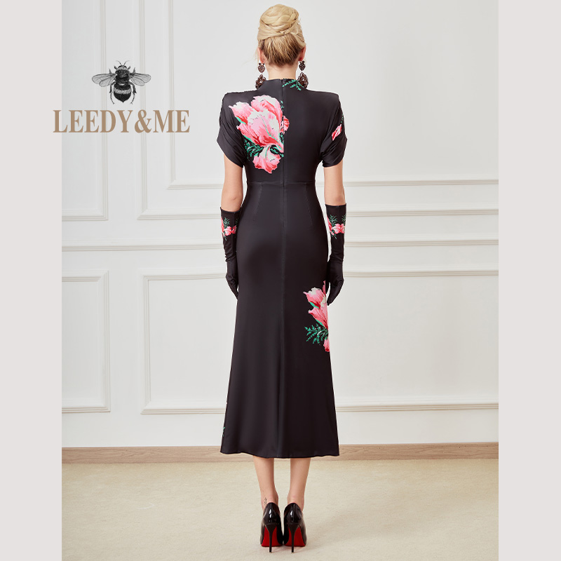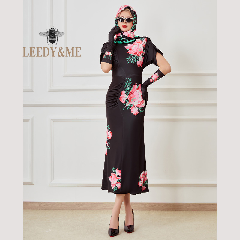 创意狐礼服裙女宴会气质中长款 婚礼婚宴妈妈小礼裙连衣裙婆婆晚装