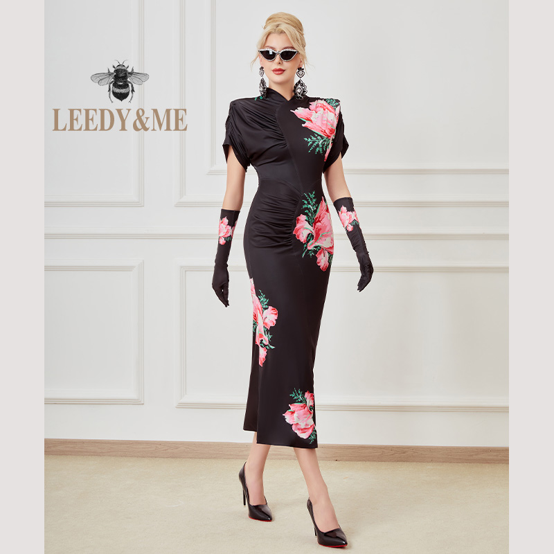 创意狐宴会礼服裙女长款 婚礼婚宴妈妈礼服改良旗袍连衣裙婆婆晚装