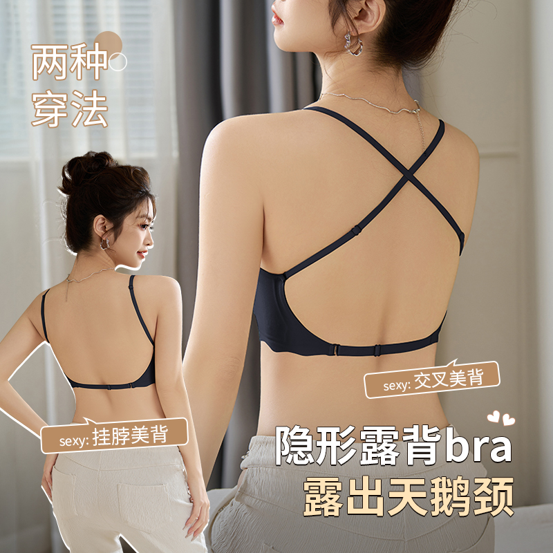 U型美背文胸一体背心内衣女小胸聚拢隐形无痕大露背2024新款 爆款