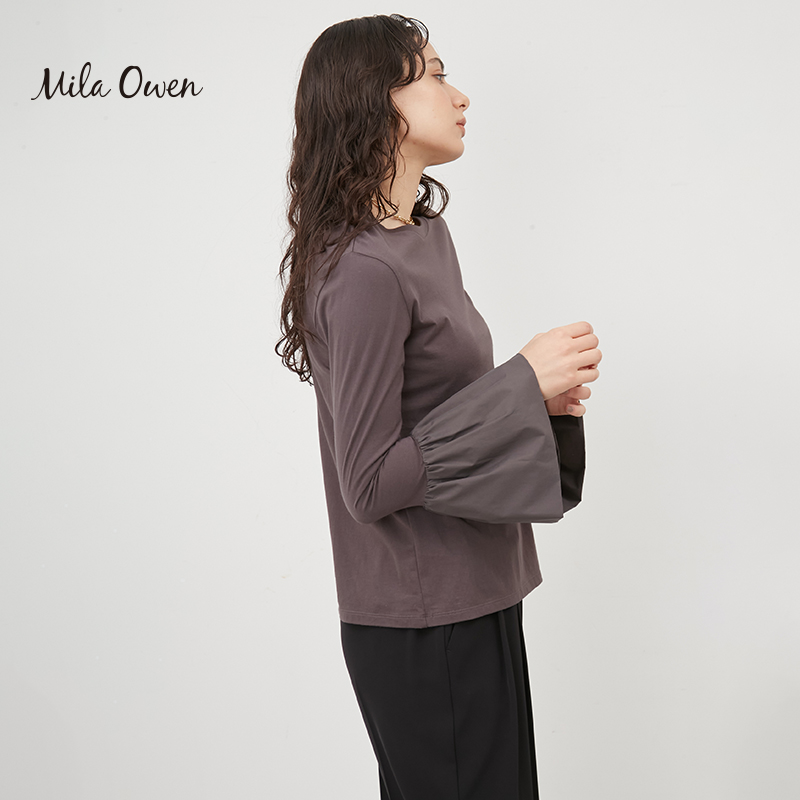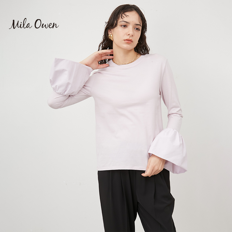 打底棉T恤09WCT241090 甜美气质纯色喇叭长袖 Mila Owen春夏法式