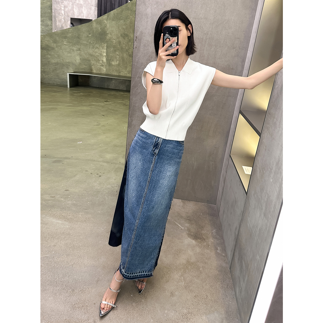 解构拼接设计感丹宁牛仔半身裙长款 COVERINS2024夏季 新款