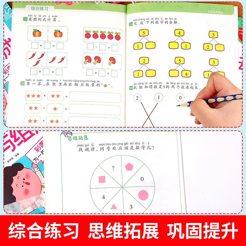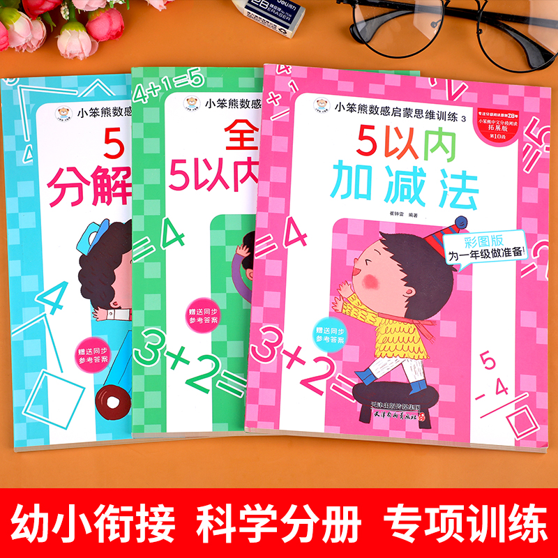 5以内加减法练习册分解与组成 幼小衔接应用题口算题卡卡片教具幼儿园口算天天练数学幼儿加法减法计算儿童中班小班学前班 五以内
