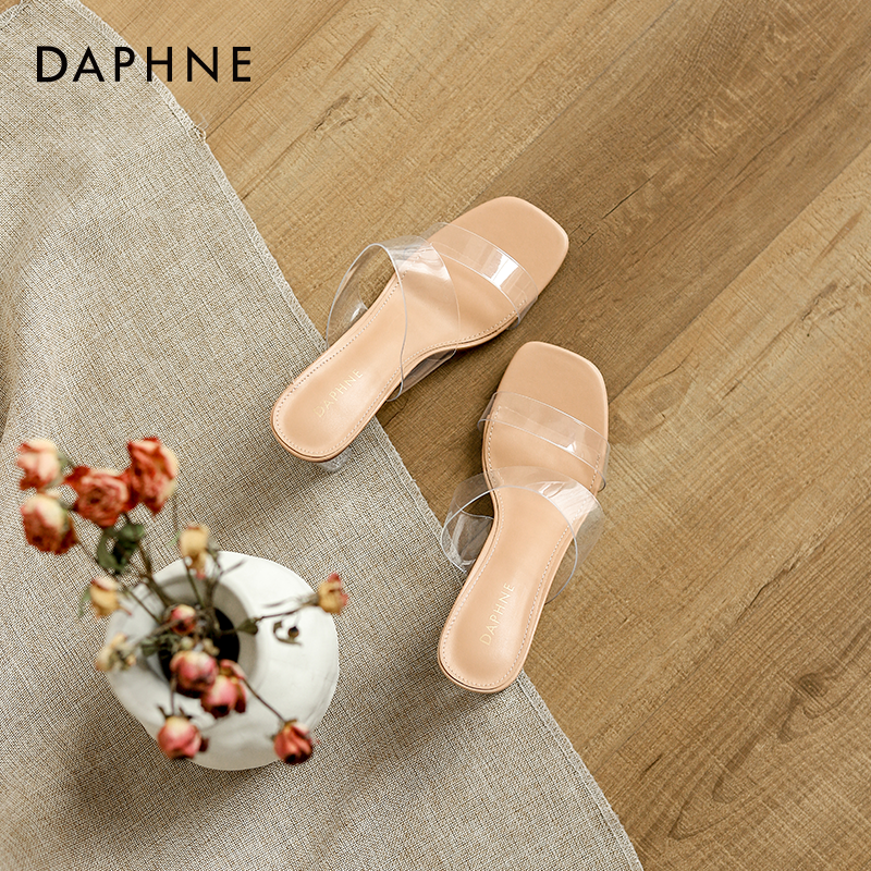 水晶跟配裙子凉拖鞋 达芙妮透明高跟凉鞋 时尚 2024新款 女夏外穿 女款