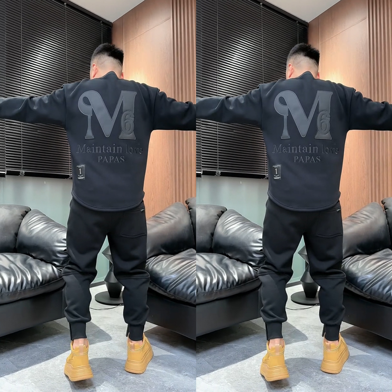 圆领情侣款 长袖 休闲卫衣 潮流纯色压刺绣燕尾上衣男士 2025秋冬新款