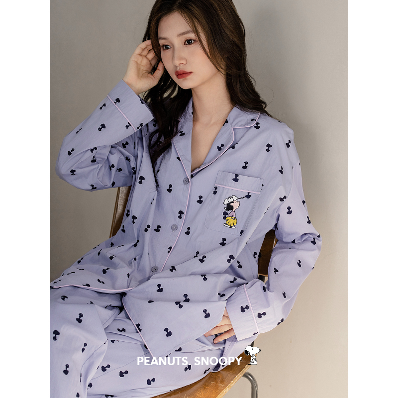 可爱史努比长袖 柔软棉套装 家居服时尚 大码 开衫 贝妍睡衣女春秋新款