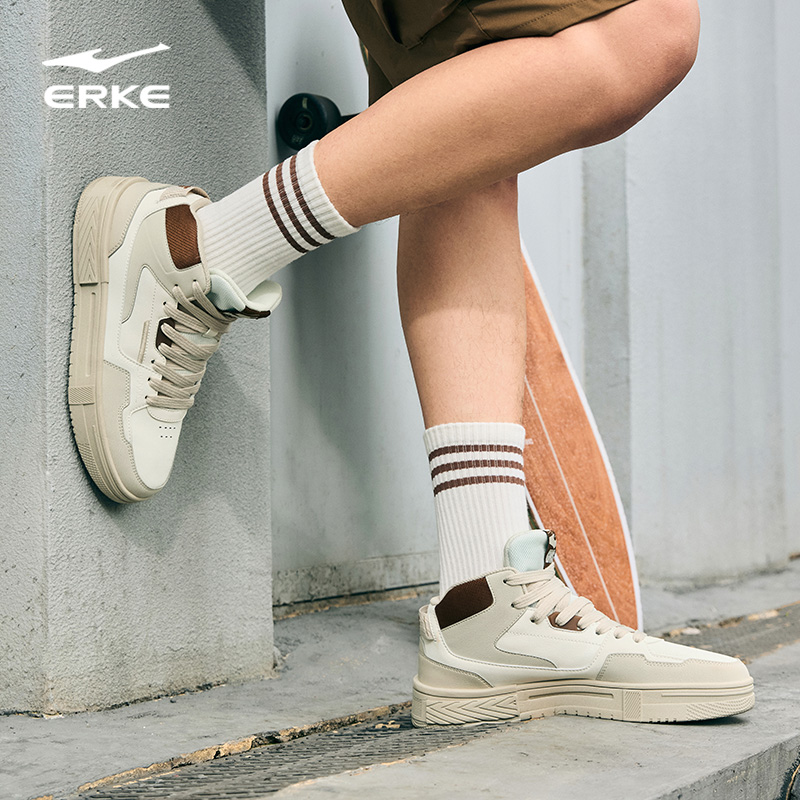 运动鞋 契约鸿星尔克高帮男鞋 厚底休闲鞋 皮面保暖小白鞋 2025新款