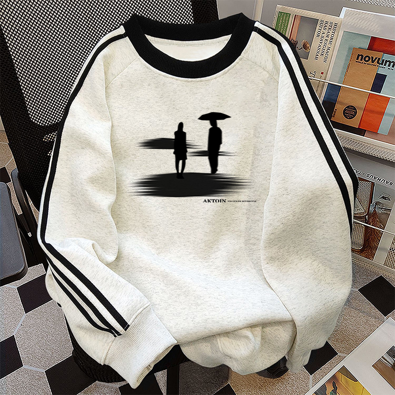 休闲简约落肩袖 宽松圆领时尚 女套头上衣 新款 快鱼卫衣女2025年秋季