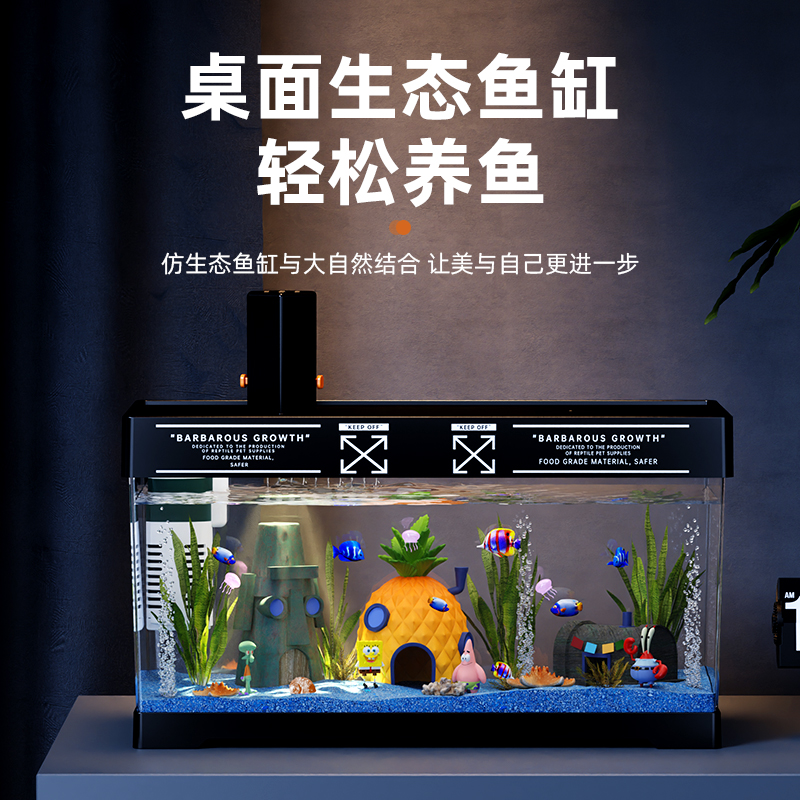2025新款 家用金鱼缸生态海绵宝宝造景小型客厅斗鱼缸亚克力水族箱