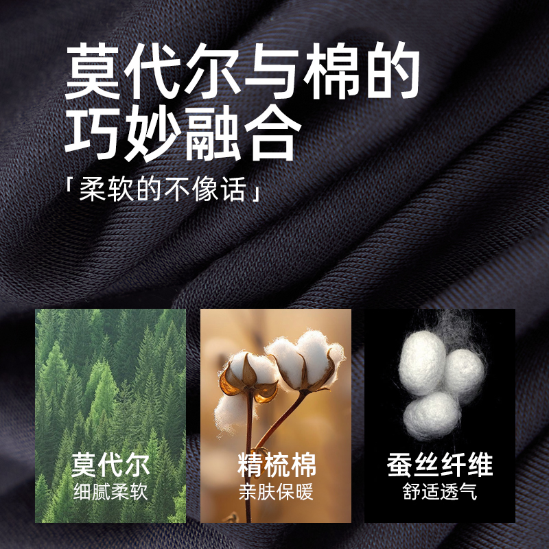 男款 含蚕丝秋衣秋裤 无痕圆领亲肤打底 套装 莫代尔棉保暖内衣男士