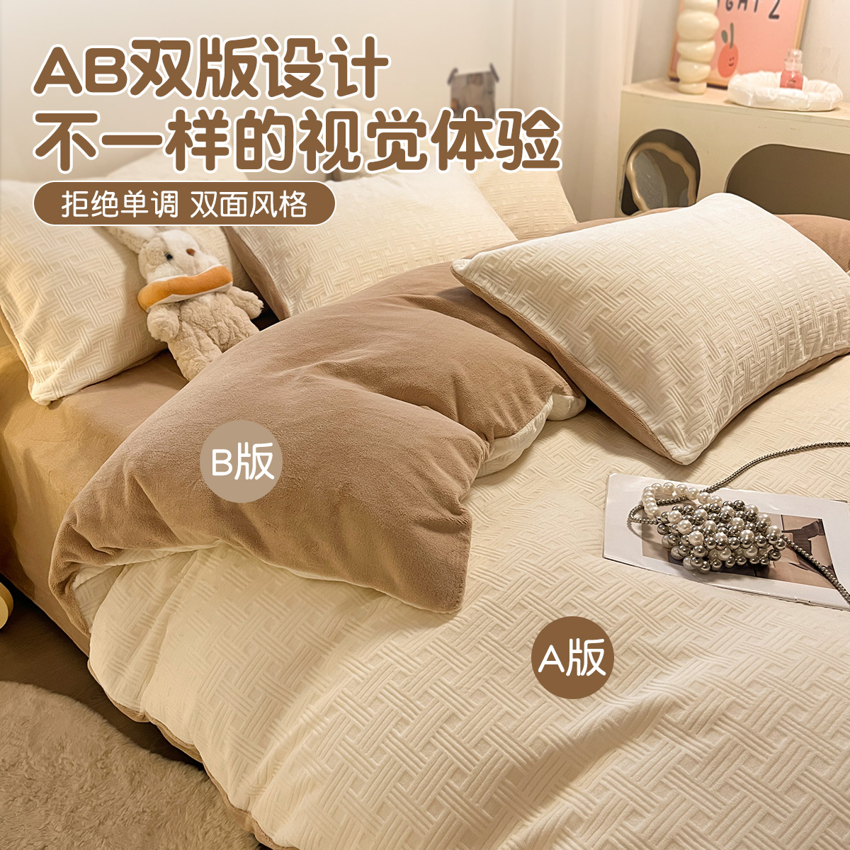 冬季 加厚牛奶绒被套单件加绒法兰绒被罩150x200冬天双面绒珊瑚绒