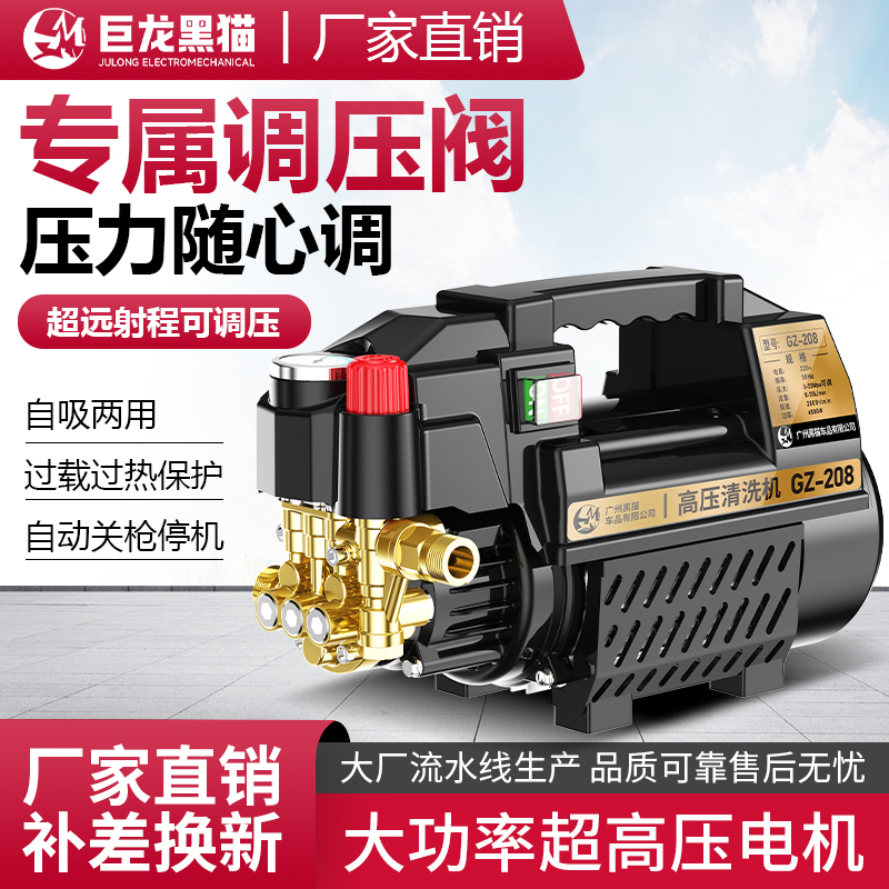 巨龙黑猫洗车机220v高压水枪洗车神器可调压感应电机便携式 清洗机