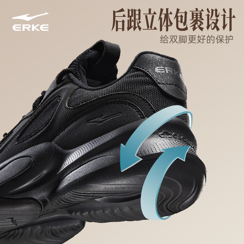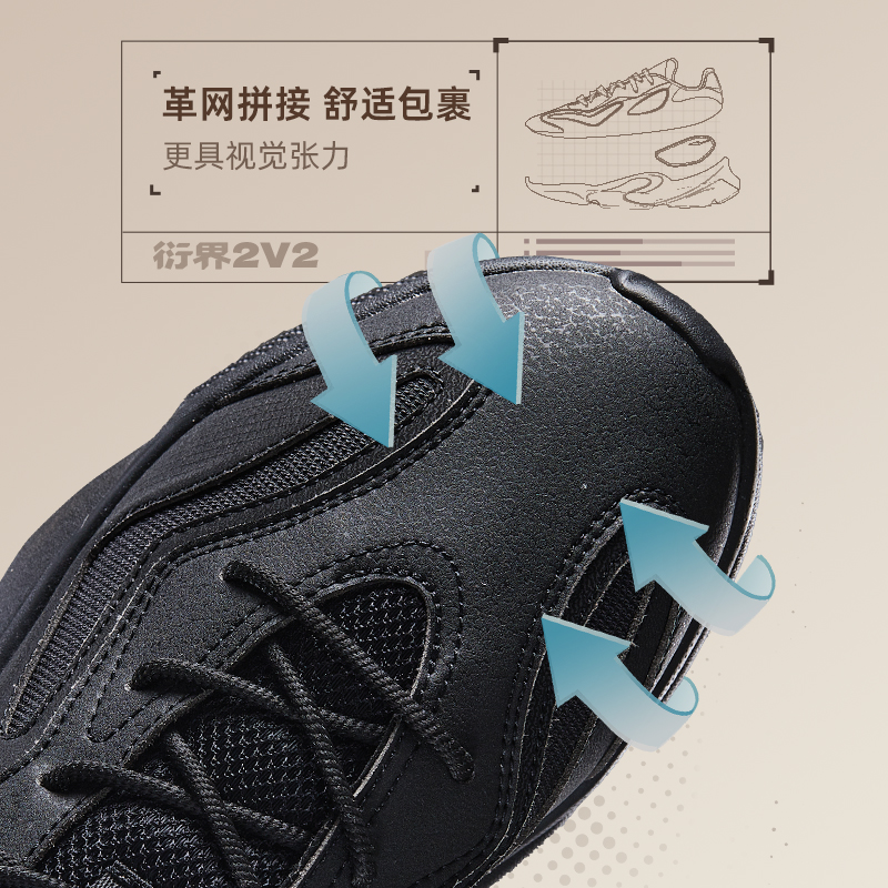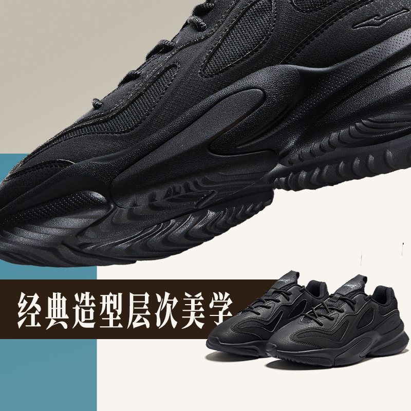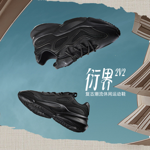 增高百搭休闲老爹鞋 鸿星尔克衍界2v2黑色厚底运动鞋 新款 秋季 男鞋