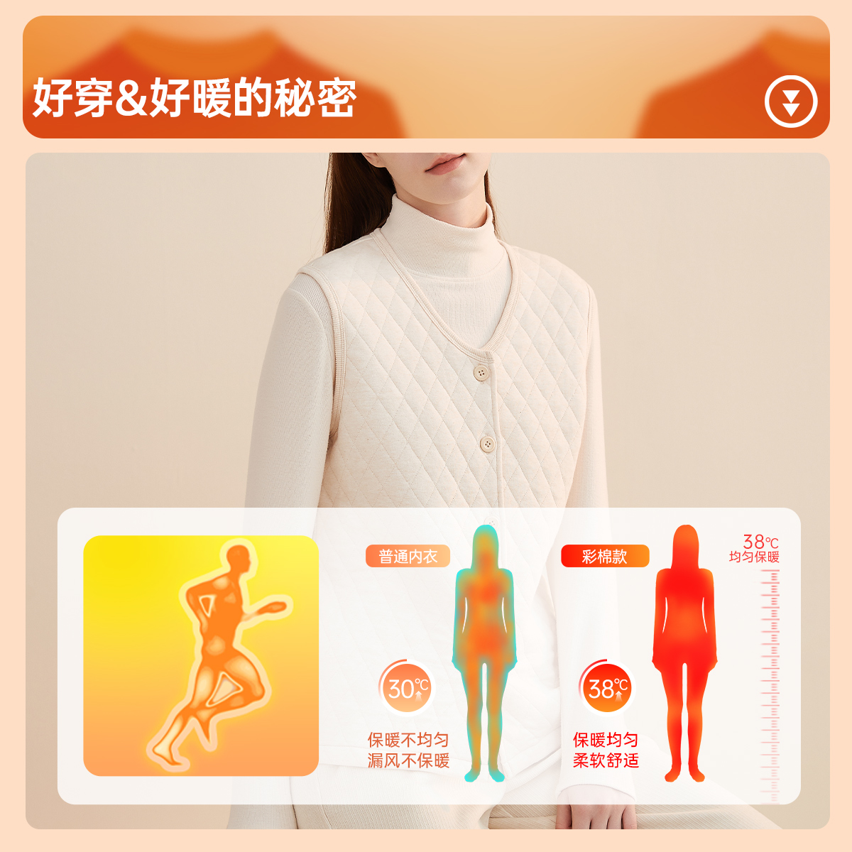 顶瓜瓜顶瓜瓜保暖背心女彩棉空气层纯棉亲肤透气秋冬保暖上衣男
