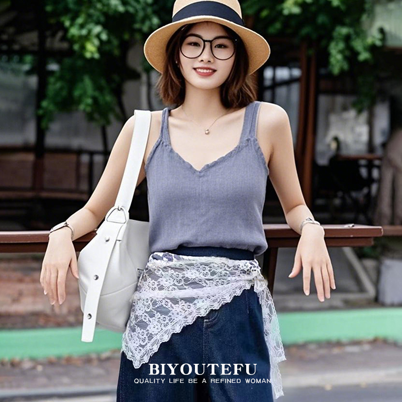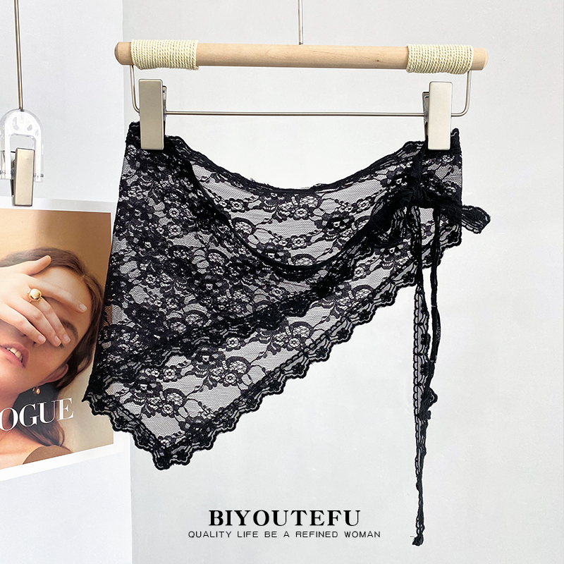 三角屁帘女2025春夏叠穿蕾丝半身裙提花网纱腰巾户外围裙罩配裤 子