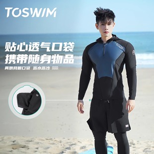 长裤 TOSWIM泳衣男款 泳帽泳镜三件套防晒长袖 备泳裤 潜水冲浪 游泳装