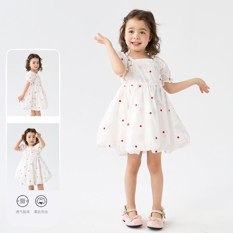 巧比童女童夏装 甜美可爱简约舒适宝宝连衣裙婴儿公主裙 2025新款