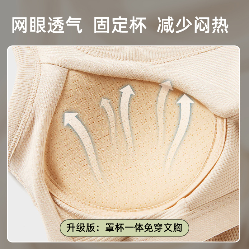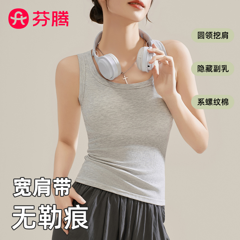 芬腾方领吊带背心女免穿胸罩薄款 百搭文胸打底上衣美背 显瘦新款