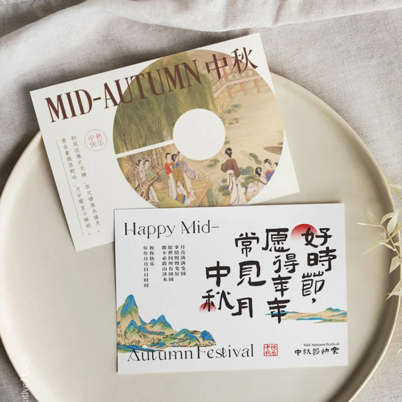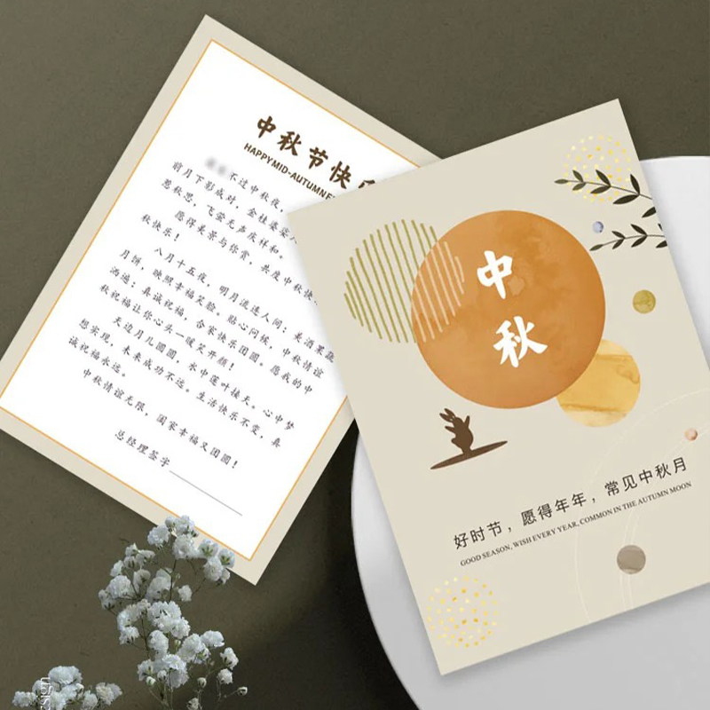 中秋节卡片定制高端凸版 印刷贺卡祝福卡中国风创意设计订做礼品礼盒印刷小卡片感谢卡月饼礼品盒伴手礼高级感