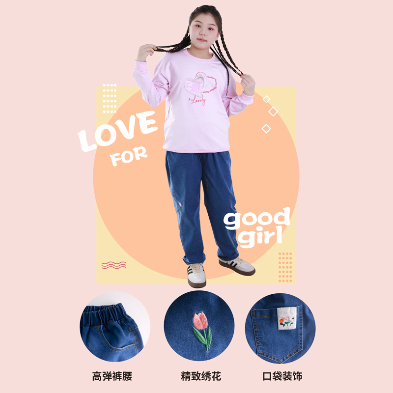 女童裤 儿童裤 子2025秋冬新款 牛仔裤 子 中大童直筒阔腿裤 植木童装